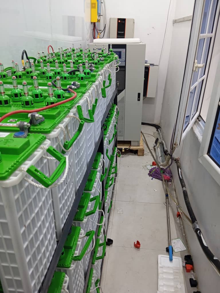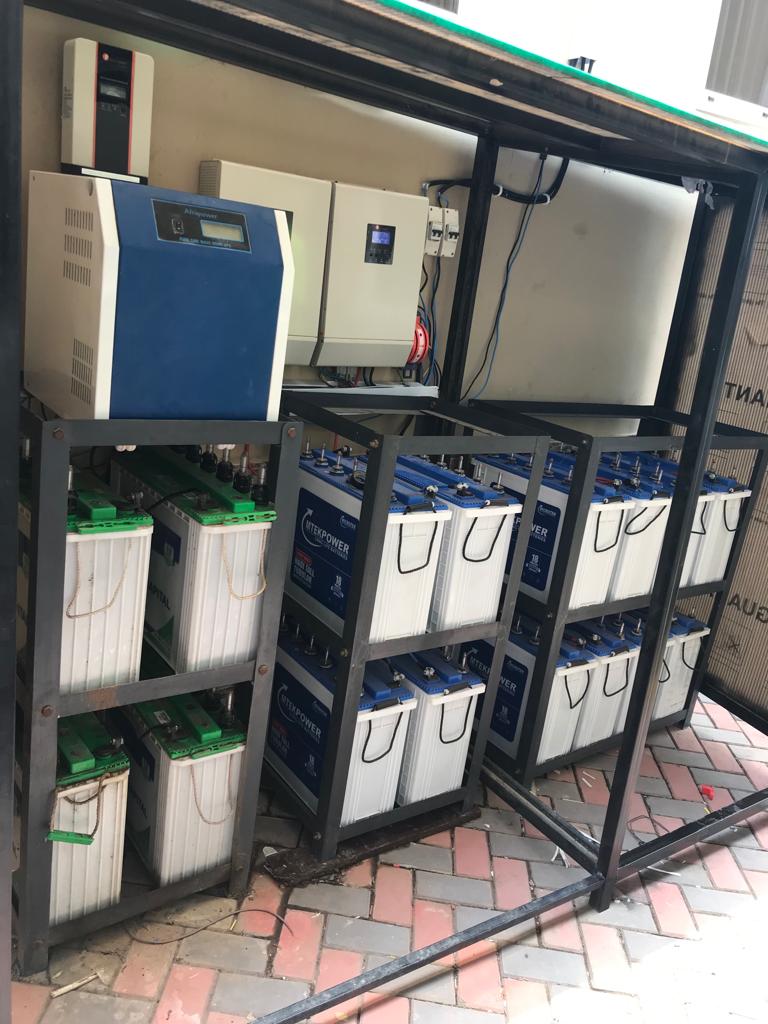The installation of batteries.